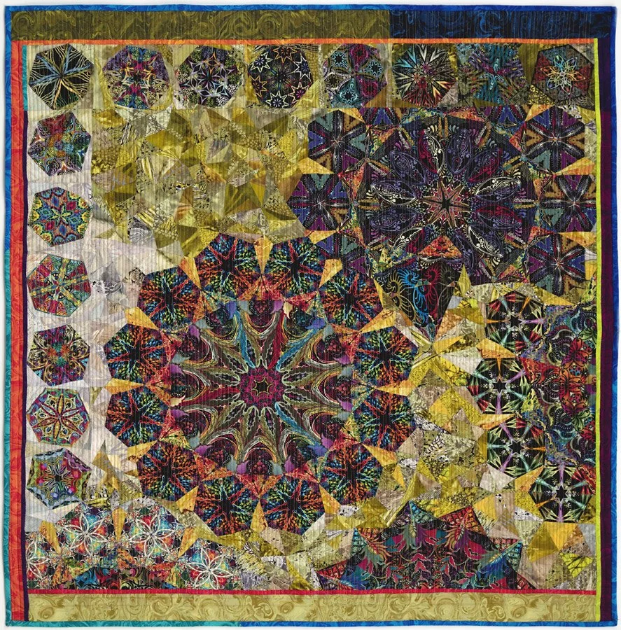 While many still use colorful bits and pieces of fabric, others also utilize mixed media taking the works to a fine art category in presentation. Some have taken the bright star patterns of old and turned them into calm single color studies of serenity and zen.