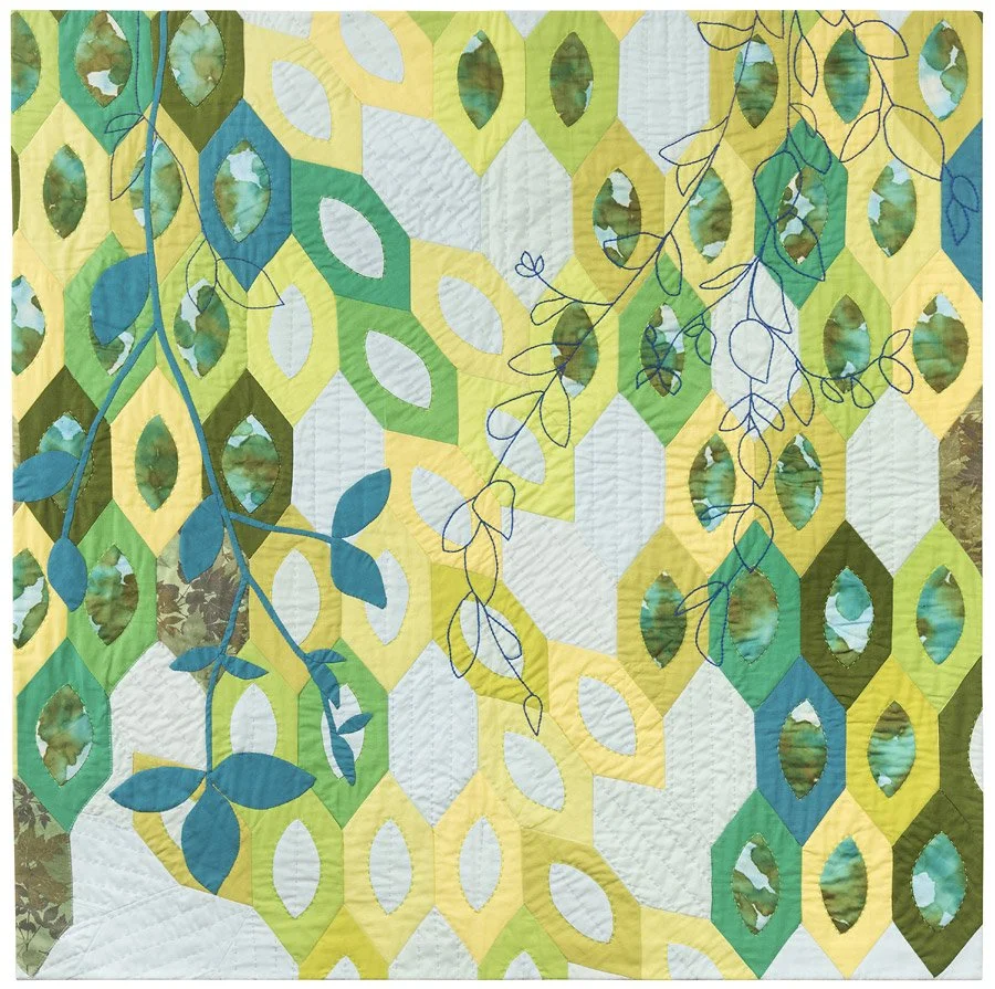 Artist Kim Svoboda builds an architectural dream in her quilt that suggests the lovely moments of travel where you explore and discover hidden vistas behind every corner and BTW, you are on your own too while doing it. As a travel junky and a designer I felt particularly connected to this one and imagined the scenic bridges, arches and buildings of Europe while studying it.